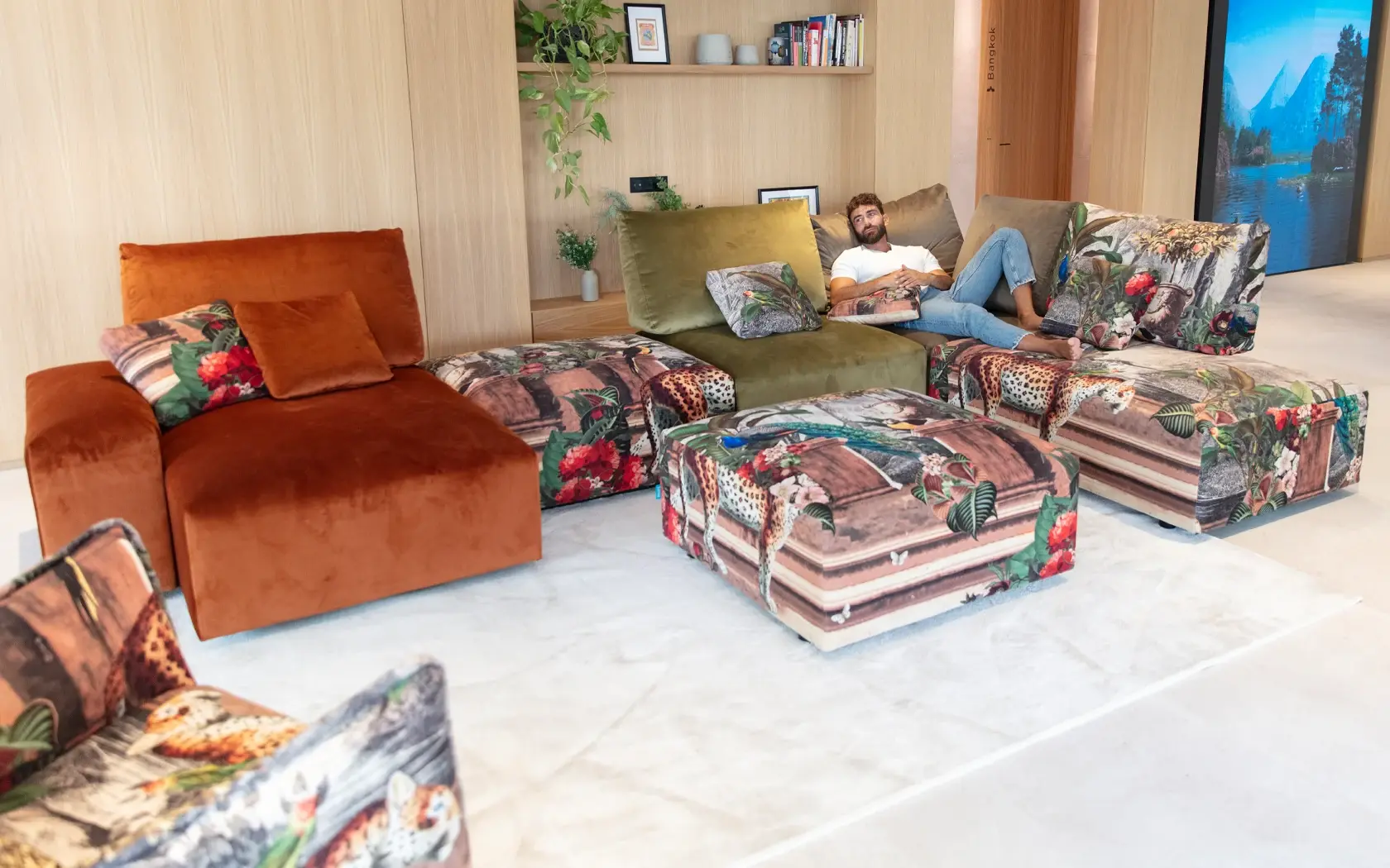 Die neue Kollektion besteht aus sieben spektakulären Zeichnungen sind auf einen samtigen Stoff, der seine auffällige und lebendige Farben verstärkt gedruckt.