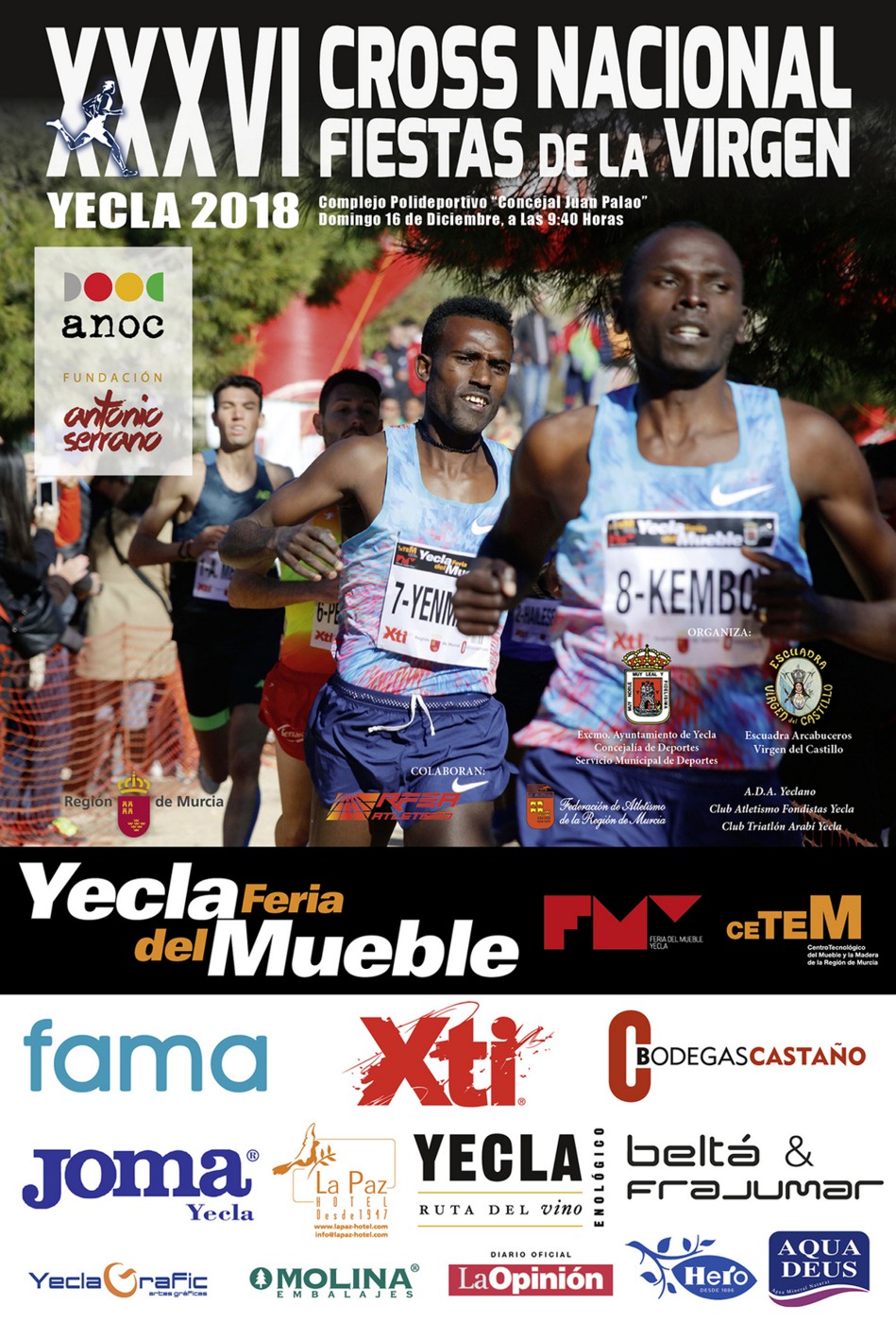 Am Sonntag 16. Dezember fand die 26. Ausgabe vom Nationalen Cross Fiestas de la Virgen de Yecla statt. Eine Edition, die wieder das bequemste Podium der gesamten Cross ANOC-Rennstrecke hatte, das aus drei Sesseln aus dem Fama Katalog bestand. Im dritten Jahr in Folge erhalten die Athleten, die bei den absoluten maskulinen und femininen Events die Schublade erklimmen, jeweils einen Sessel. Die Gewinner beider Kategorien bekommen einen Christie Sessel, die Zweitplatzierten einen Swing Sessel und die Caracola geht an den dritten Platz. Die Organisation des Cross von Yecla bringt wieder eine große Gruppe von Athleten zusammen, von den wir uns sicher sind, dass sie großartige Rennen im Sportkomplex 'Concejal Juan Palao' genießen werden. Vor den absoluten Wettbewerben, finden Turniere für die restlichen Kategorien statt, an denen eine hohe Beteiligung erwartet wird.