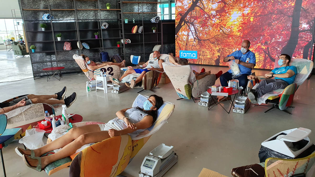 Von den mehr als 70 angemeldeten Blutspender waren am Ende 56 Spenden möglich. Ein wichtiger Standpunkt ist, dass mehr als 46 % der Spenden von Menschen kamen, die zum ersten Mal spendeten. Sie ermutigten sich dank des angenehmen erstellten Umfeldes in den Fama-Einrichtungen.
