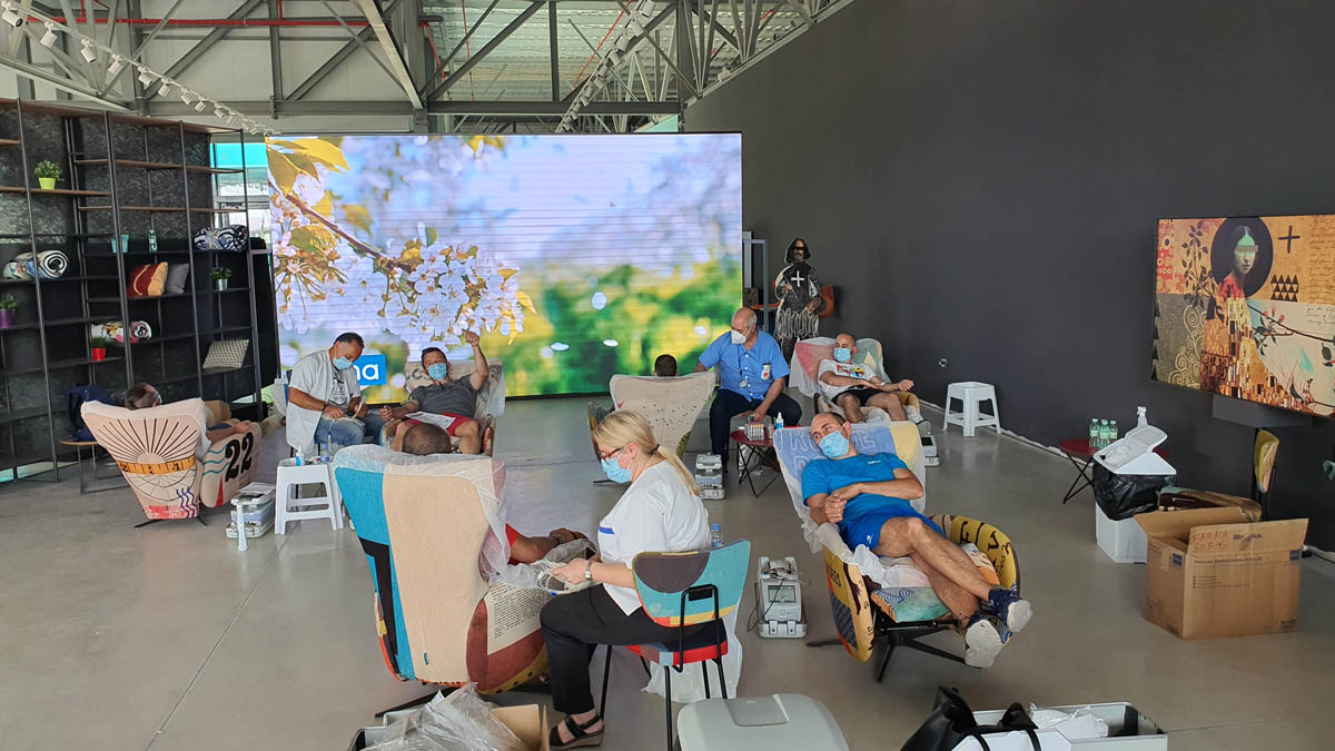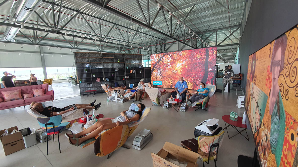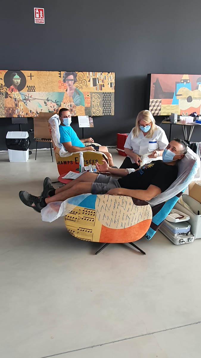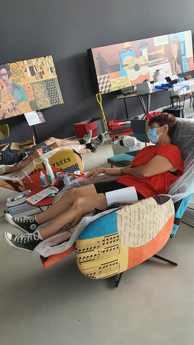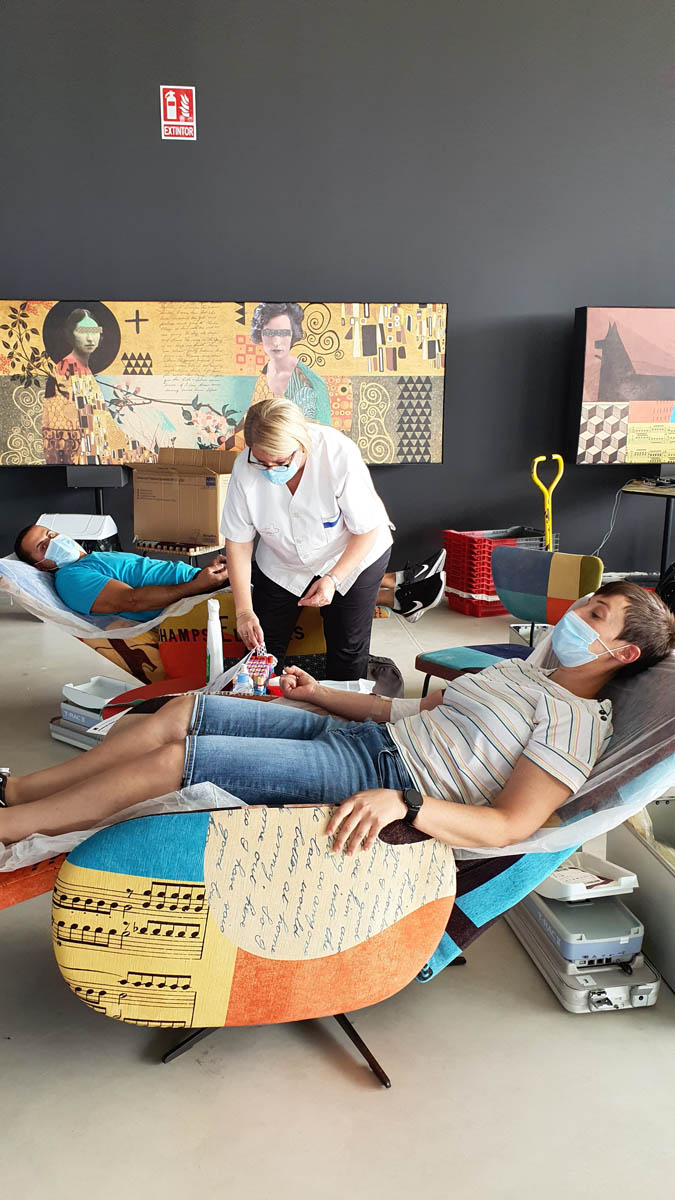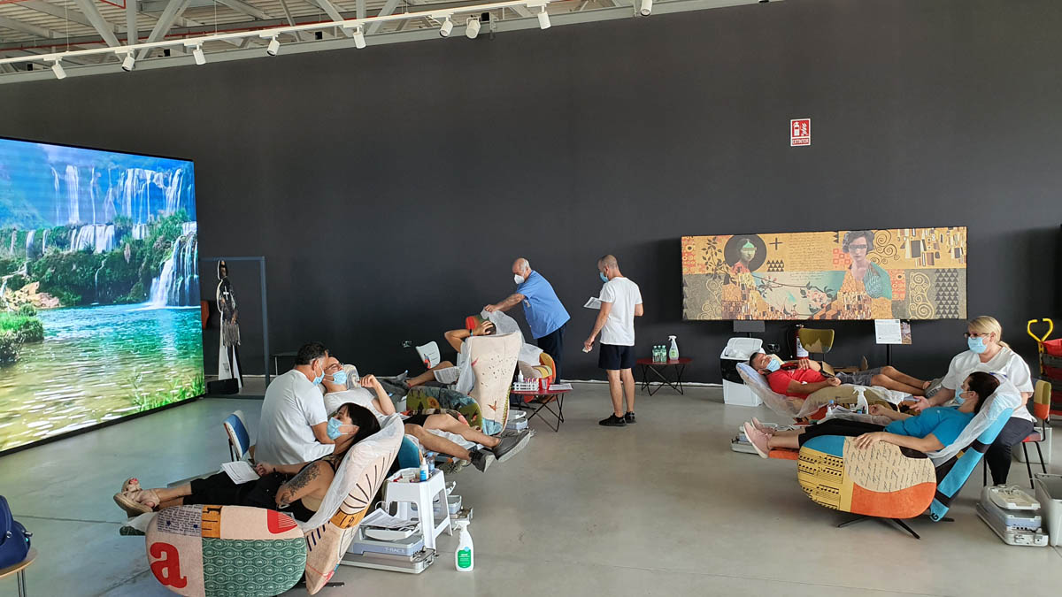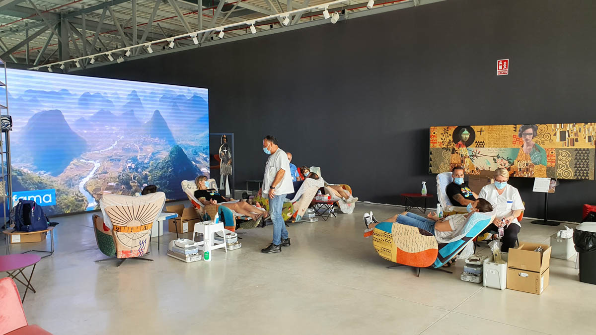 Wie es nicht anders sein konnte, hat Fama sein Beitrag geleistet und hat ein angenehmes Ambiente erstellt, damit die Blutspender es gemütlicher und entspannter während der Spende haben. Es wurden die typischen Klappstühle gegen bequeme Mondrian Sessel ausgetauscht. Die ruhige Musik und der große Bildschirm mit schönen relax Bildern erschuf die entsptannte Umgebung. Alle Mitarbeiter von Fama, die sich ermutigten zu spenden, haben es in einem angenehmen und lockeren Umfeld gemacht.