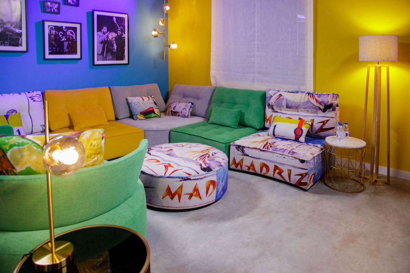 „La Noche D“ ist das Programm, das Dani Rovira auf RTVEs La 1 präsentiert und das Möbel von Fame in seinem VIP-Bereich hat. In dieser zweiten Staffel hat das Programm diesen Bereich integriert, an dem die Gäste vorbeigehen, bevor sie zum Set kommen. Es besteht aus einer kleinen Bartheke, auf der wir 4 unserer Hocker mit verschiedenen Muster aus den Kollektionen „Wander“ und „La Movida“ finden. Ein farbenfrohes Arianne Love Sofa mit den Stoffen „Barcelona“ und „Madriz“ ist das Hauptstück des VIP-Bereiches von „La noche D“, ergänzt durch einen MyCuore Sessel in Grün und mit fröhlichen Mustern des Stoffes „Sevilla“. Eine sehr schöne und harmonische Einrichtung, die unter den Fernsehzuschauern nicht unbemerkt bleibt. Auf den Bildern sehen wir einige der Gäste des ersten Programms: Marcelo, Clarice, Ana Guerra, zusammen mit Dani Rovira, Carlos Latre und den anderen Mitarbeitern von La Noche D.