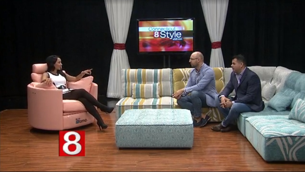 Der Besitzer von CADO Modern Furniture, Sebastian Mietus und Macin Gedek, waren vom Fernsehprogramm Connecticut Style des Fernsehsenders 8 eingeladen, um auf den Trends der Möbelindustrie zu sprechen. Unsere Modelle „Moon" und „Arianne" waren die Farb- und Komfortsymbole der Fernsehkulisse. Dies Programm war eine gute Chance, um allem Liebhaber der Einrichtung aus Connecticut die Fama Sofas zu zeigen. CADO ist der exklusive Verteiler von Fama in Connecticut.