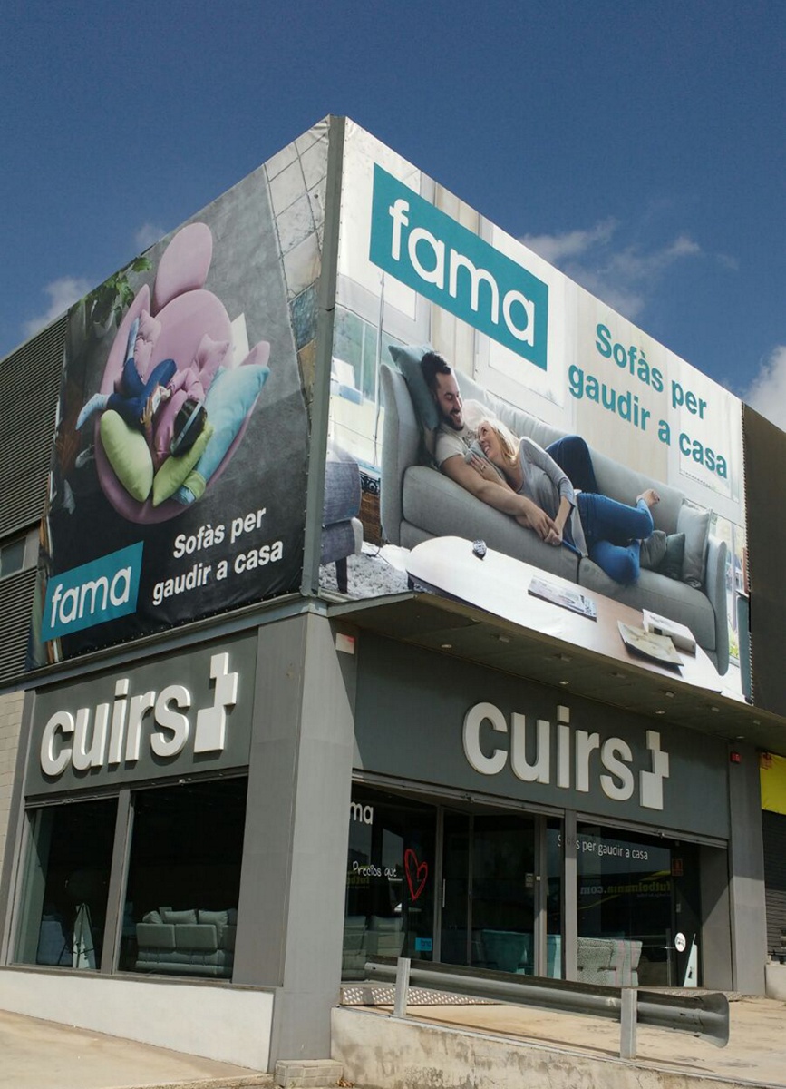 Fama hat gerade ein neues Showroom in Montigalà (Badalona) eröffnet. Cuirs, eins unserer wichtigsten Händler in Barcelona hat die Ausstellung in Montigalà mit vielen unseren Sofas und Armsessel erweitert. An der Fassade des Gebäudes kann man zwei große Werbebanner mit Bilder unsere letzte Fernsehkampagne. Dieses Showroom ist der perfekte Raum für diejenigen, die ein neues Sofa kaufen mochten.