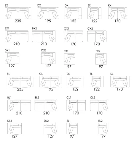 Comme son prédécesseur, Calessi dispose de deux modules ayant l’accoudoir inclus dans la carcasse, en plus d’un nouveau type d’accoudoir conçu pour compléter les trois types du Calisto. Une autre nouveauté est la possibilité d’ajouter l’option d’un système de chargement moyennant un port USB dans l’accoudoir (option disponible pour les accoudoirs «S» et «X»). Un nouvel appui-tête en fibre a été créé afin d’améliorer le confort de manière incroyablep et finalement, nous avons changé la composition des rembourrages de l’assise de façon à éviter des plis sur les housses de l’assise tout en assurant la commodité.