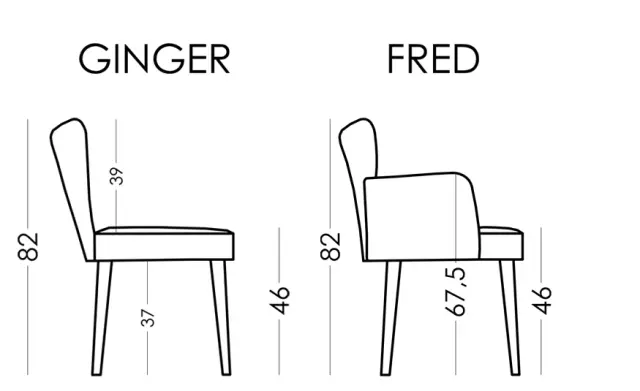 Ginger et Fred sont les grands frères des chaises Mili et Lalo ; des chaises aussi confortables et versatiles tout comme Mili et Lalo mais avec un design un peu plus tranquille et élégant.