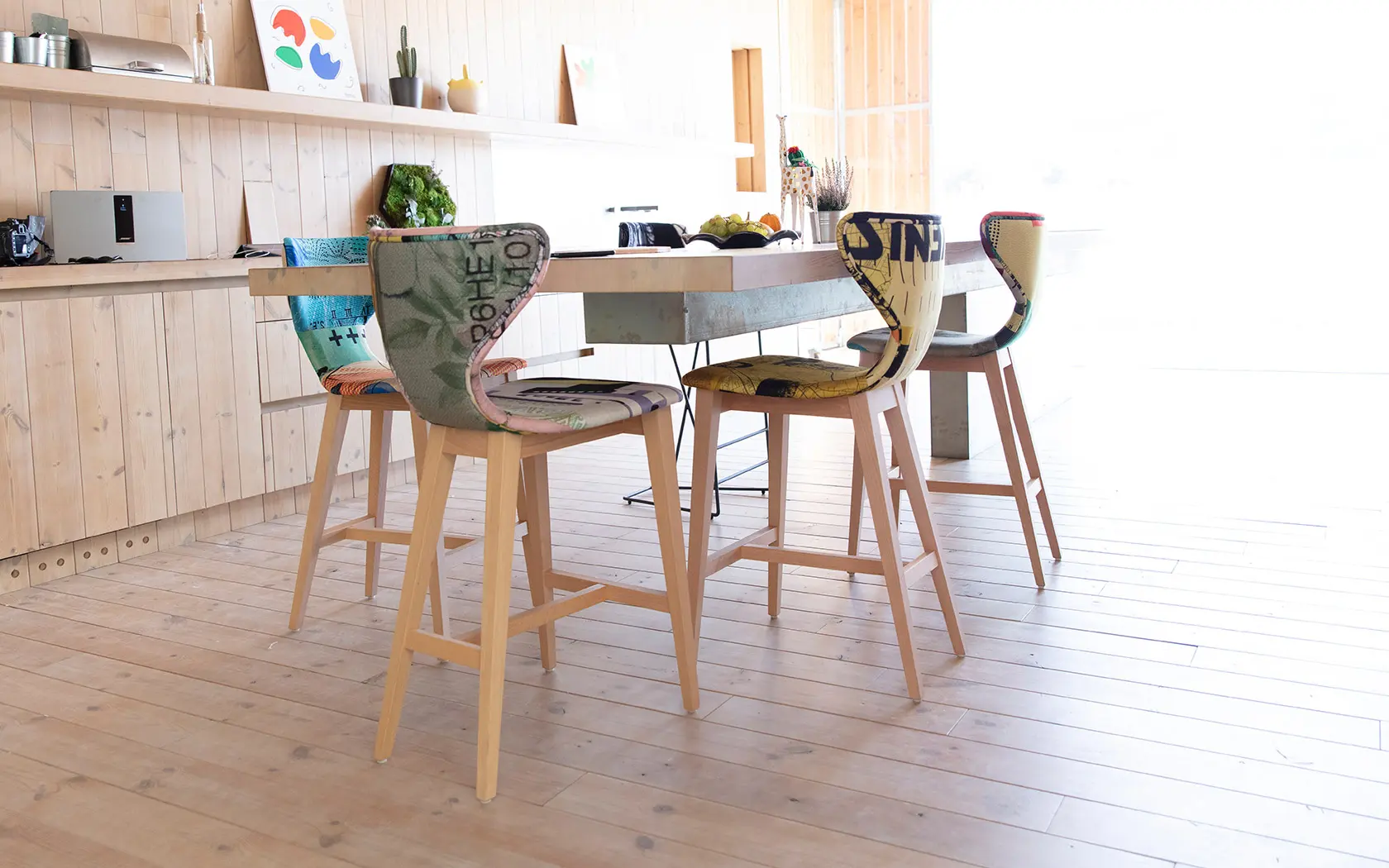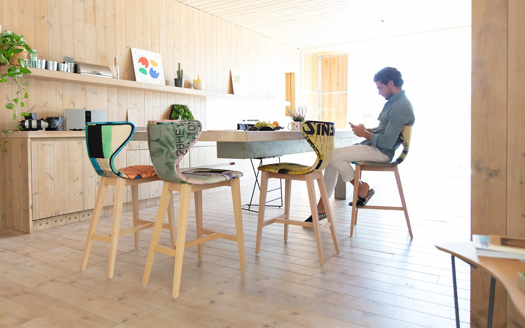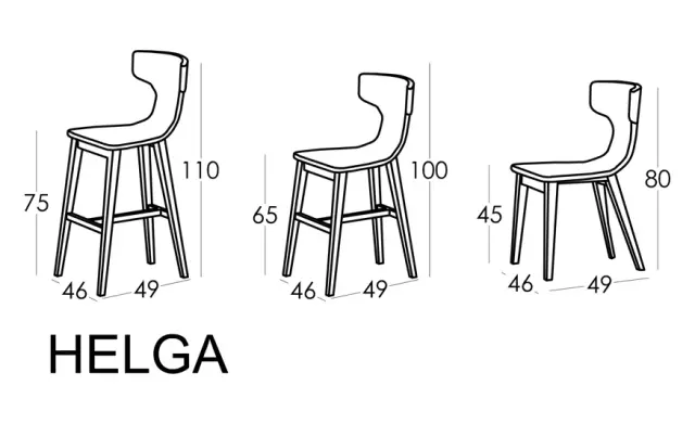 Nous présentons une nouvelle typologie de mobilier que nos clients nous ont demandé avec insistance ces dernières années: des tabourets qui sont destinés pour les cuisines ouvertes qui donnent sur le salon dans de nombreuses maisons. Les modèles Helga, avec pieds en bois, Marlon, Denzel et Burt, avec pieds en métal, sont disponibles en trois hauteurs, 45 cm (version chaise), 65 et 75 cm (version tabouret). Ils se distinguent tous par leur ergonomie et leur grand confort.