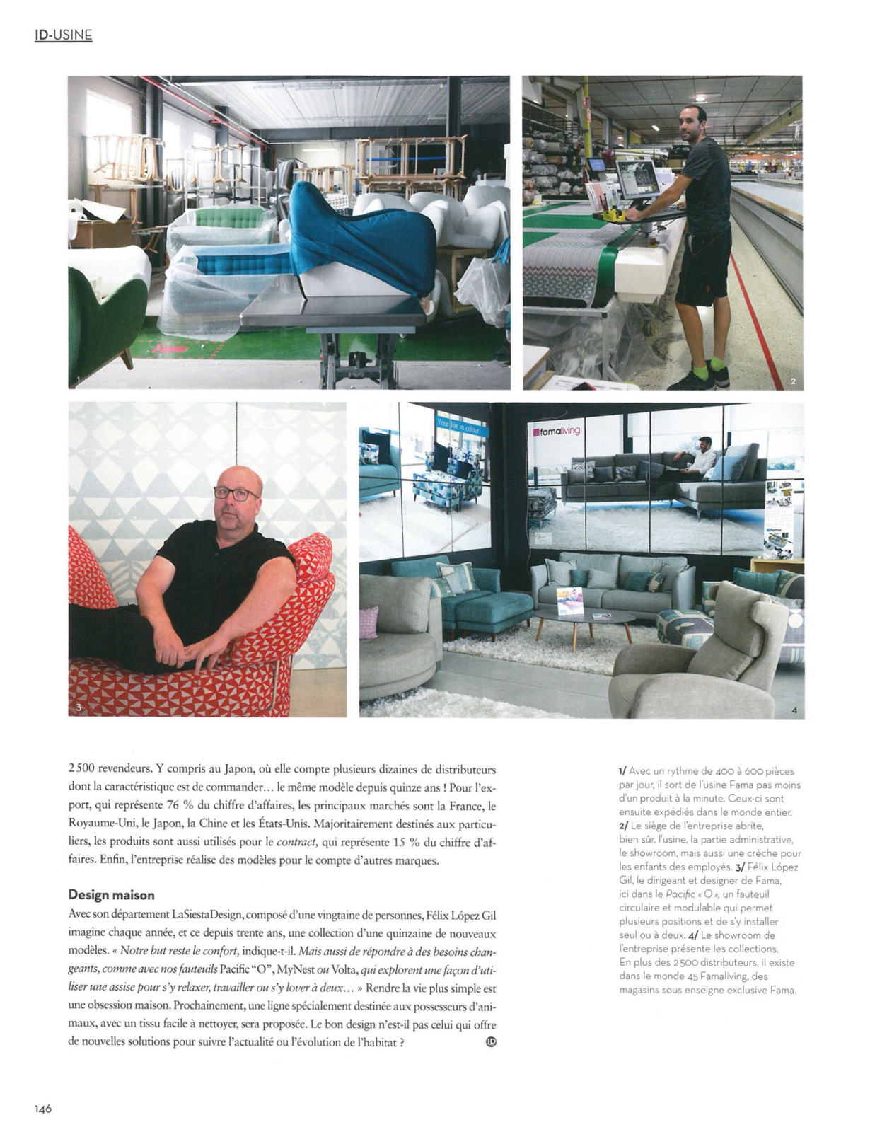 La revue française IDEAT Contemporary Life inclut un reportage sur Fama dans son numéro de novembre "Special Photo". Le journaliste Olivier Waché a visité nos installations et a pu vérifier de première main comment nos canapés sont fabriqués. Il s'est aussi imprégné du bon climat dans lequel on respire chez Fama et la passion que chacun des employés met à la fabrication de chacun des designs. En plus du texte intéressant qui accompagne l'article, vous pouvez voir des images sympathiques de quelques employés complétant ce reportage intéressant.