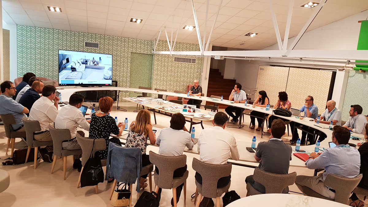 Avant de commencer la réunion, Felix Lopez a accueilli à tous les participants avec une brève introduction sur Fama et sa philosophie, puis Raúl Martínez, responsable du logiciel 3D, qui a expliqué l'utilisation de cette technologie chez Fama. Après, la réunion de travail a eu lieu avec tous les membres du groupe déplacés à Yecla, dans lequel en plus d'effectuer une analyse importante de tout ce qui s'est passé dans le canal Contract au sein du Forum des marques renommées ces derniers mois, de nouvelles actions ont été aussi proposées pour les effectuer à l'avenir. Une fois la réunion était terminée et après avoir récupéré la force avec le repas, une visite a été faite aux installations de Fama, où ils ont pu voir de première main comment un canapé est fabriqué, et en apprendre un peu plus sur l'application de la technologie dans tous les processus productif.