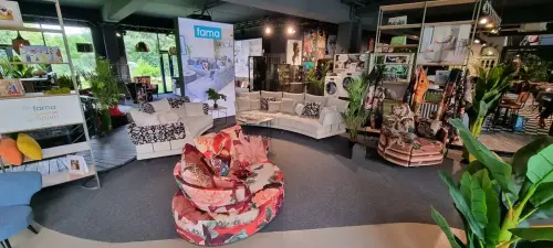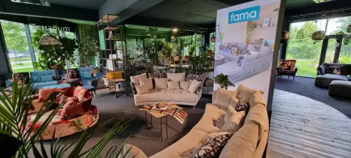 La Bavière, région emblématique de l'Allemagne, dispose désormais d'un nouveau point de vente officiel Fama. Riega, un magasin situé dans la ville d'Augsbourg, présente une exposition impressionnante et unique. Les canapés et les fauteuils du catalogue Fama y sont exposés dans un espace audacieux et naturel de 150 m².