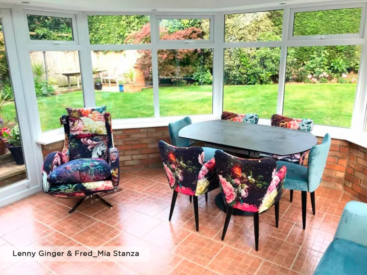 Ginger’s curved backrest provides an exceptional comfort, and Fred’s arms provide that extra comfort for the after-dinner chats.