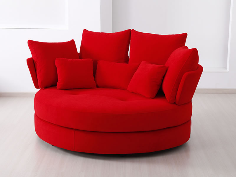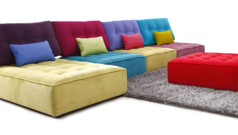 Model Arianne catches everyone’s eye in the centre of the house’s living room due to its colourful modules, footstools and chaise longue.