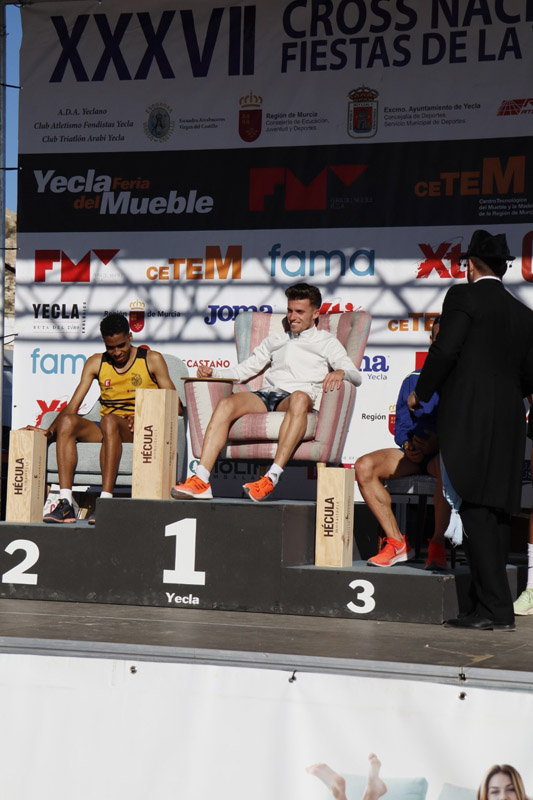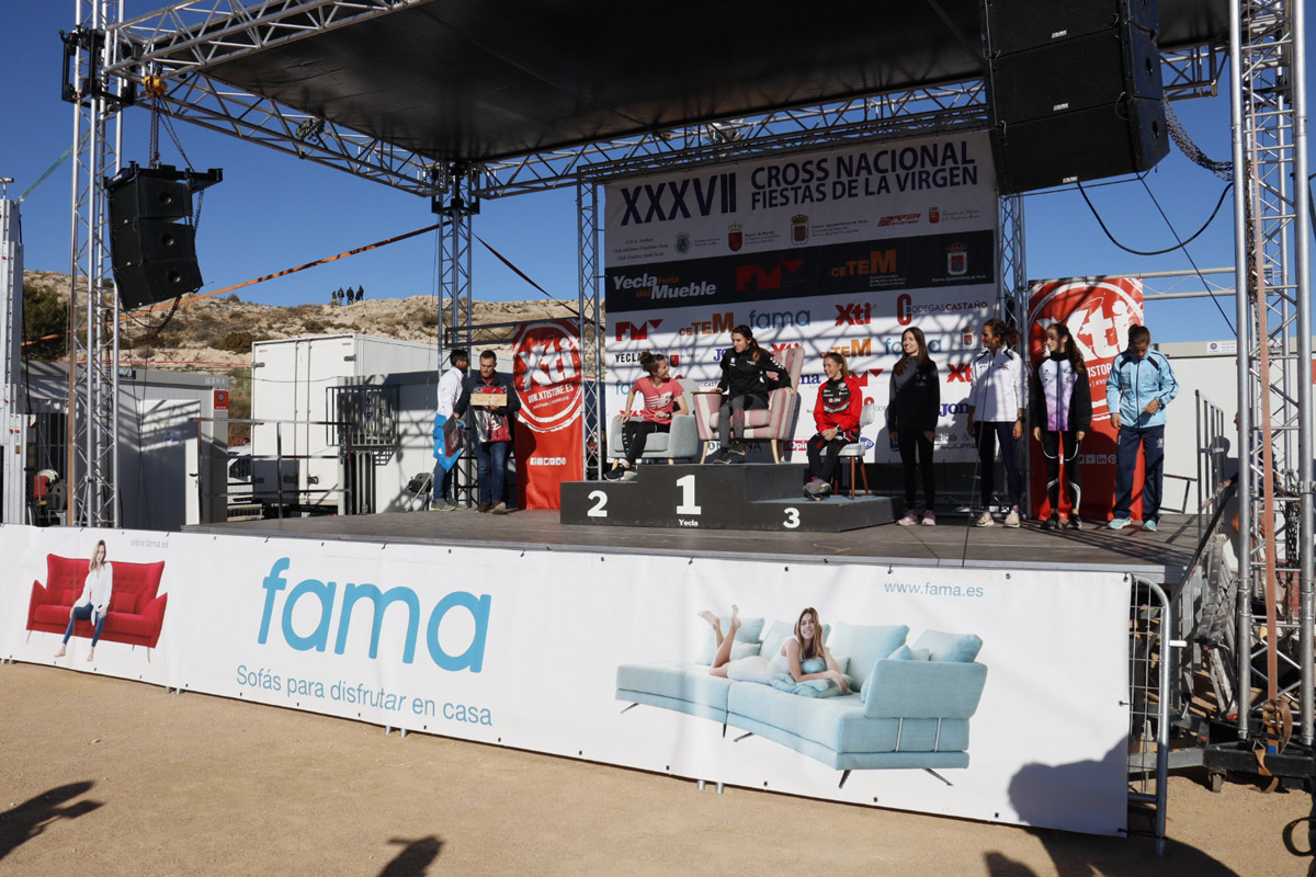 The 37th Edition of Fiestas the la Virgen National Cross was celebrated on December, 15th 2019, which was last Sunday. The event was held in Juan Palao sport centre, and the Cross races took place on a sunny and crispy morning, where María José Pérez was the absolute winner of the general female circuit and Carlos Mayo was proclaimed the absolute male winner. This year was achieved with solidarity. The podium included some Fama armchairs which were raffled at the end the races. All the funds raised were donated to Caritas Charity. A podium with armchairs that is now a classic of this Cross, where the athletes can rest comfortably after the hard races while the trophies are being given.