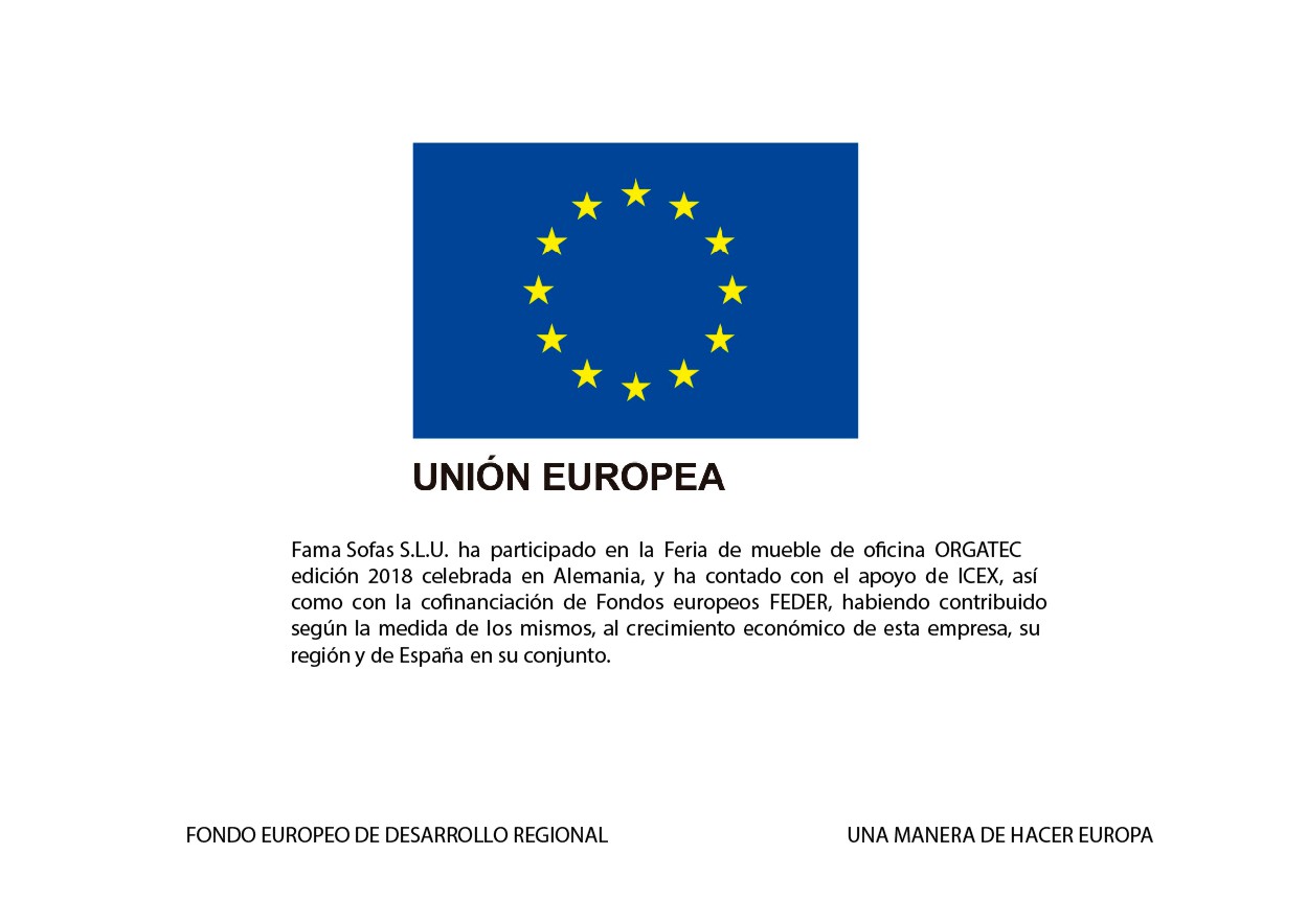Fama Sofas S.L.U has participated in ORGATEC 2018 Office furniture fair, supported by ICEX and co-financed by the European funds FEDER, who have contributed their bit to promote the economic growth of Fama, the region and Spain as a whole.