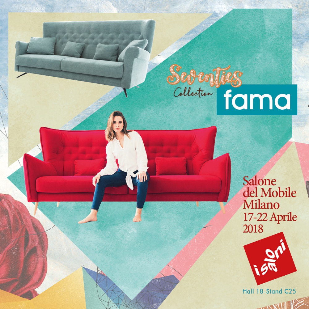 One more year Fama will be present at the “Salone del Mobile Milano-Isaloni”, to be held from 17th to 22nd April in Milan. This time Fama changes its location, still in Pavilion 18, but in the central corridor that connects with Pavilion 14, in an area with higher visibility. The new Seventies Collection, which is having a great acceptance, will be represented in Milan by Nina&Simone sofa, Nadine modular sofa and the Avalon recliner as well as the Best Sellers from our catalogue, presented with the new 2018 fabrics.