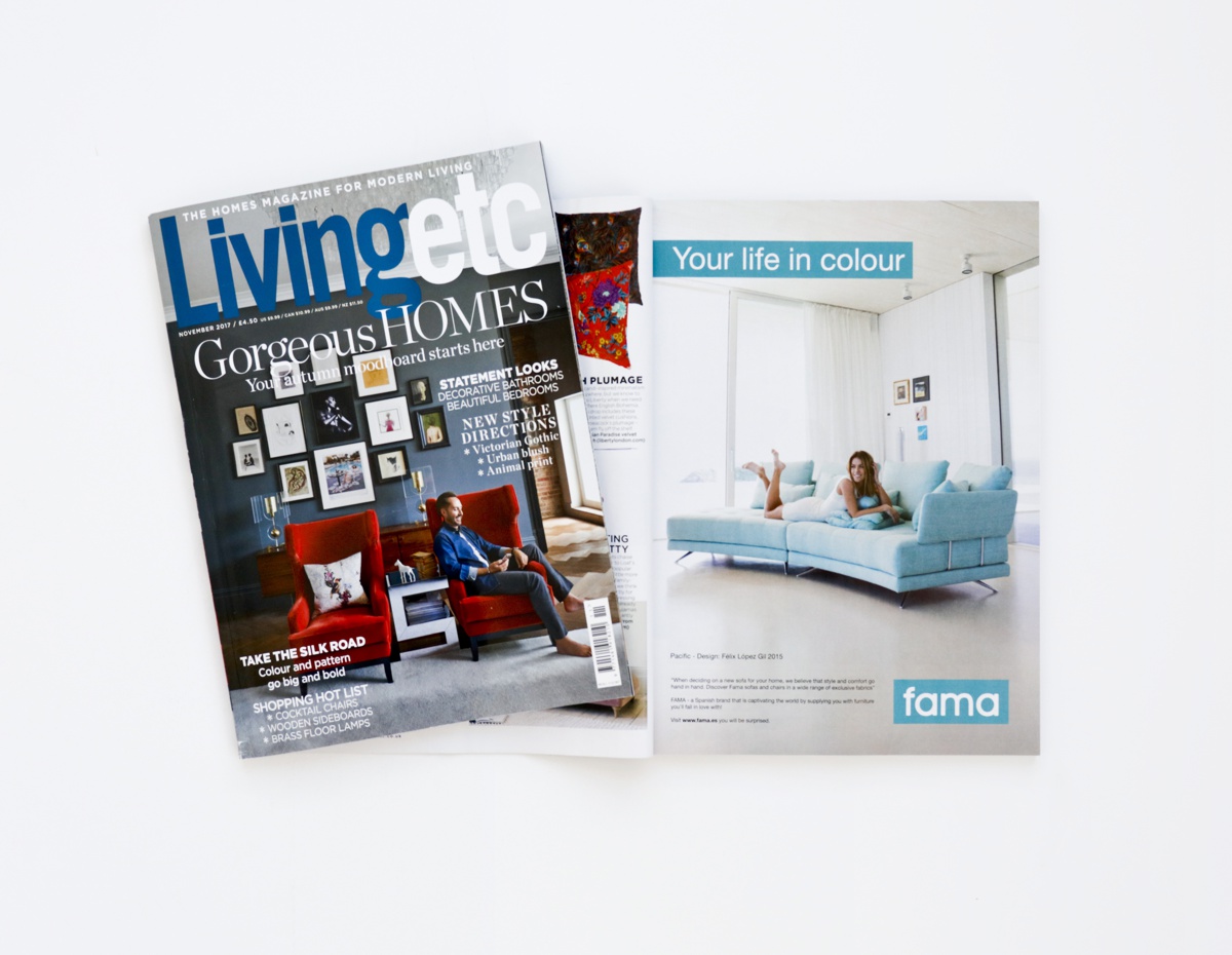 A full page featuring our Pacific sofa is showing in the November issue of the British decoration magazine LivingEtc. This way, we reinforce our advertising campaign in the main UK decoration magazines to strengthen the Fama brand and reach more potential customers.