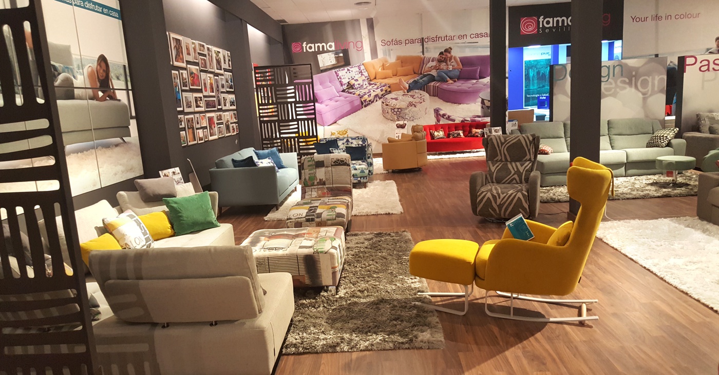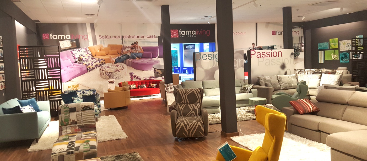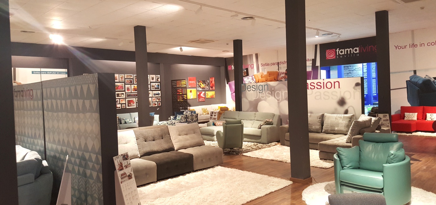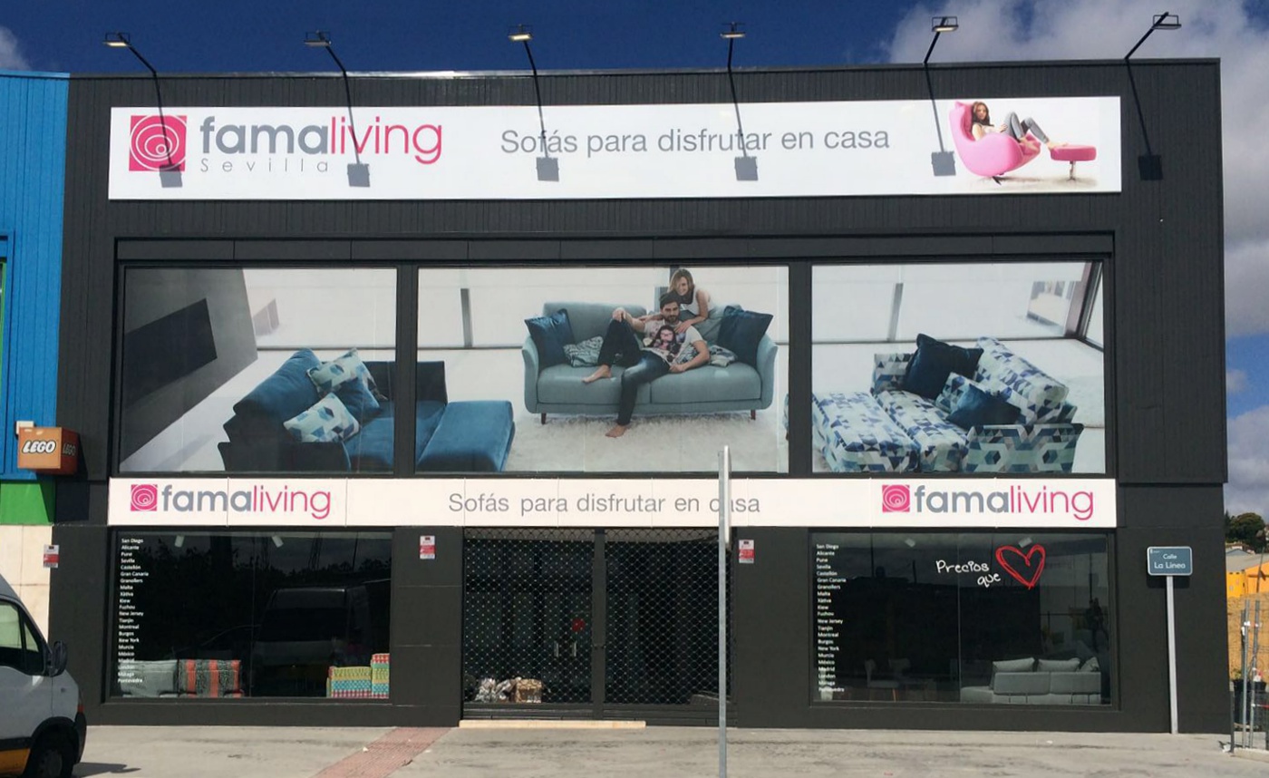 Famaliving has opened the first shop in Sevilla. The shop is located in the industrial area “El Manchón de Tomares”. A large showroom that displays a great selection of Fama items that will delight all lovers of design and comfort in Sevilla and the surrounding areas. A bright and large shop together with a very professional staff make Famaliving Sevilla the perfect place to see all the different options before buying a sofa. With its stunning graphics outside the store, Famaliving Sevilla will not to go unnoticed among all the public around this area.