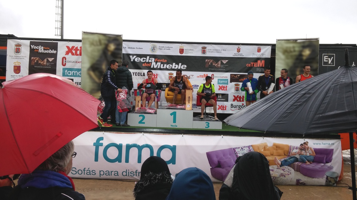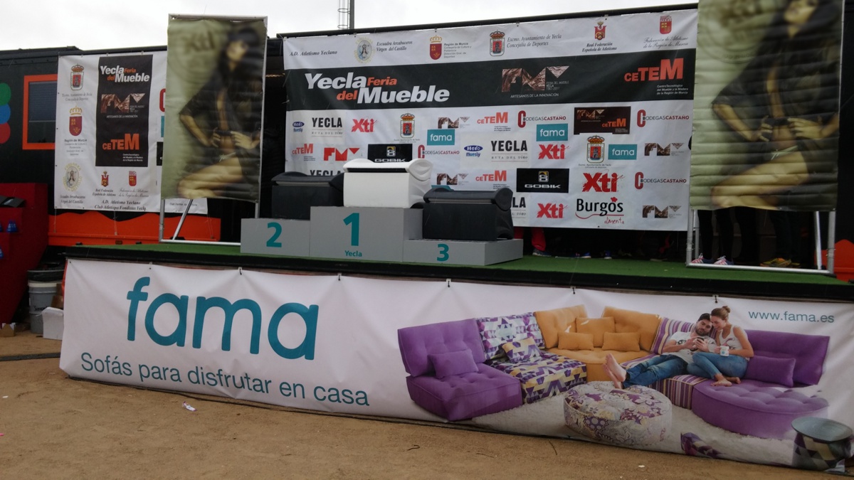 Last Sunday 18th was held the National Cross “Fiestas de la Virgen de Yecla 2016”. An edition that was marked by the cold, rain and mud that accompanied the athletes throughout the morning. The novelty was that this race counted with a very special podium formed by some of our armchairs, which were given as awards in the male and female elite categories. The podium included armchairs Lenny, La Caracola and Elvis but during the morning, as the rain became constant, they were replaced by 3 Arianne Garden outdoor modules which could be closed when not in use to avoid getting wet.