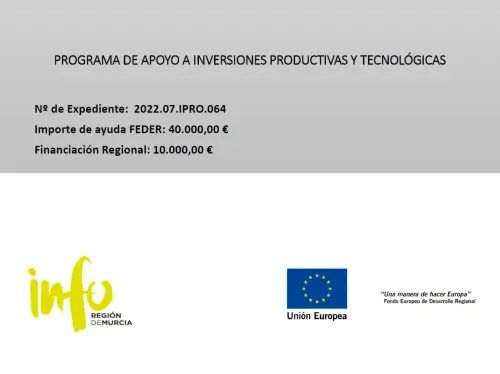 Program for Productive and Technological Investments 2022. This project received financial support from the Institute for the Development of the Region of Murcia and the European Regional Development Fund (ERDF).